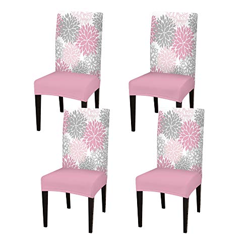 Professional reviews from industry experts Pink Flowers Chair Covers for Dining Room Set of 4 Minimalist Art Stretch Printed Chair Protectors Covers, Removable and Washable